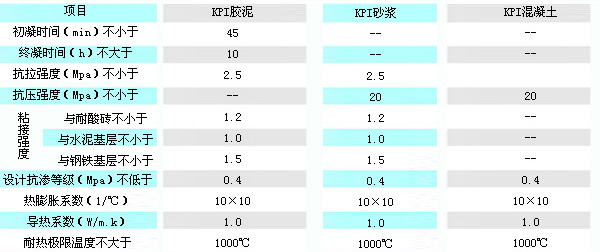 (一)、KPI耐酸耐热系列防腐材料的性能及特点