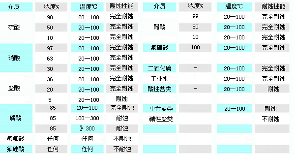 KPI胶泥可用于各种浓度的硫酸、盐酸、硝酸、磷酸、铬酸、次氯酸、氯磺酸、甲酸、草酸、醋酸等酸类,各类有机溶剂、各类酸性盐类、氯气、双氧水等氧化性介质,以及上述各类介质的混合物中。